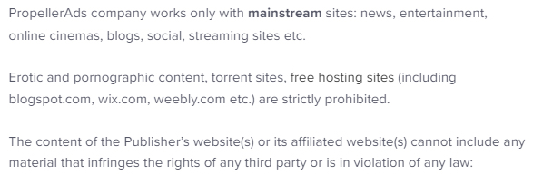 It is completely forbidden to use erotic and pornographic content, torrent websites, and free hosting services (such as blogspot.com, wix.com, and weebly.com).
