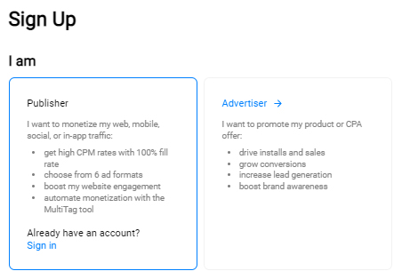 We choose the account type as Publisher. Note that we are registered as a publisher here.